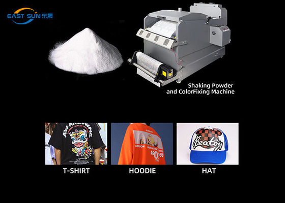 Spruzzare uniformemente la polvere di TPU DTF sul disegno stampato sulla pellicola di trasferimento.